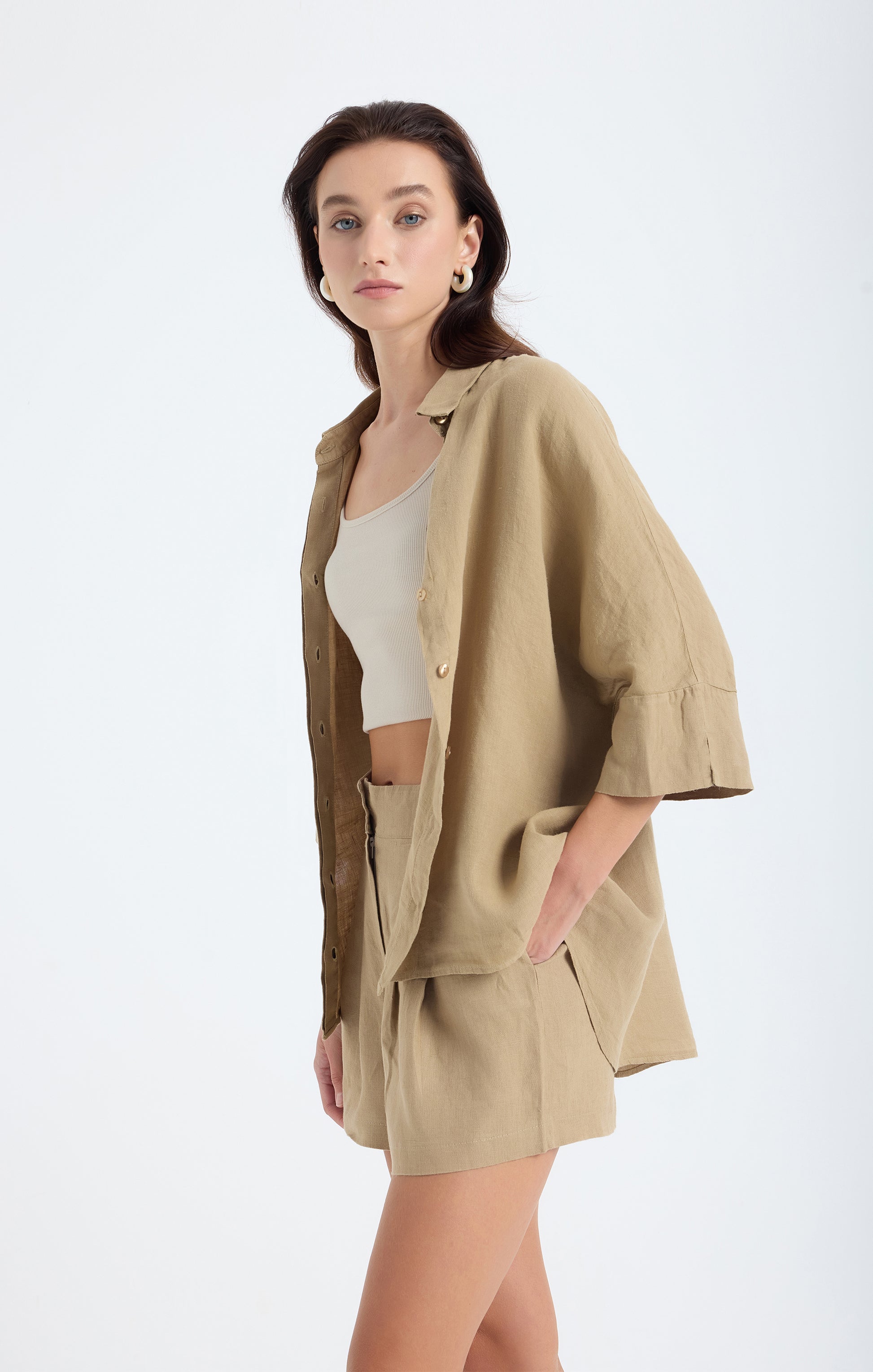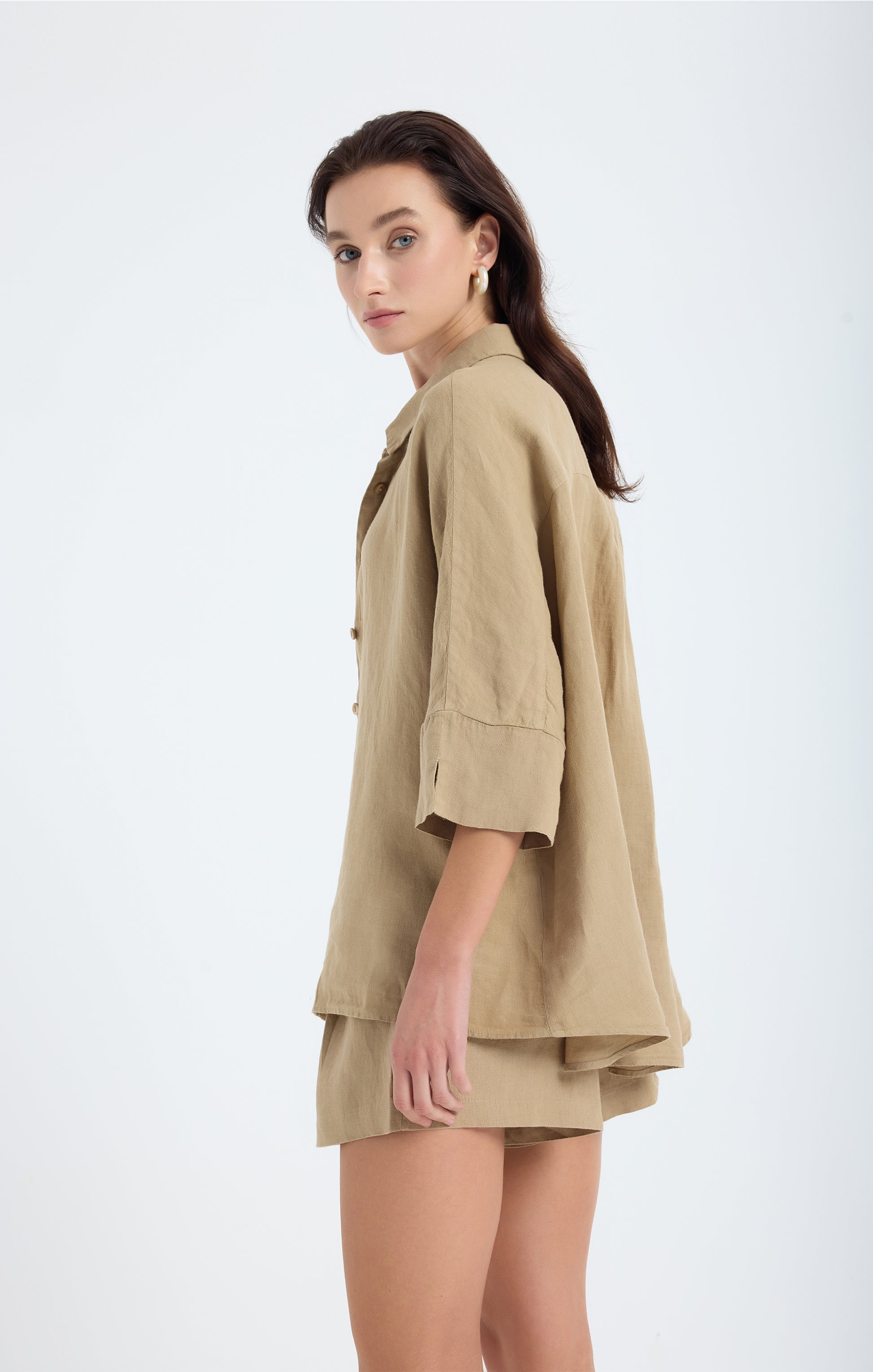 Iyan 100% Linen Oversize Shirt - Dark Beige