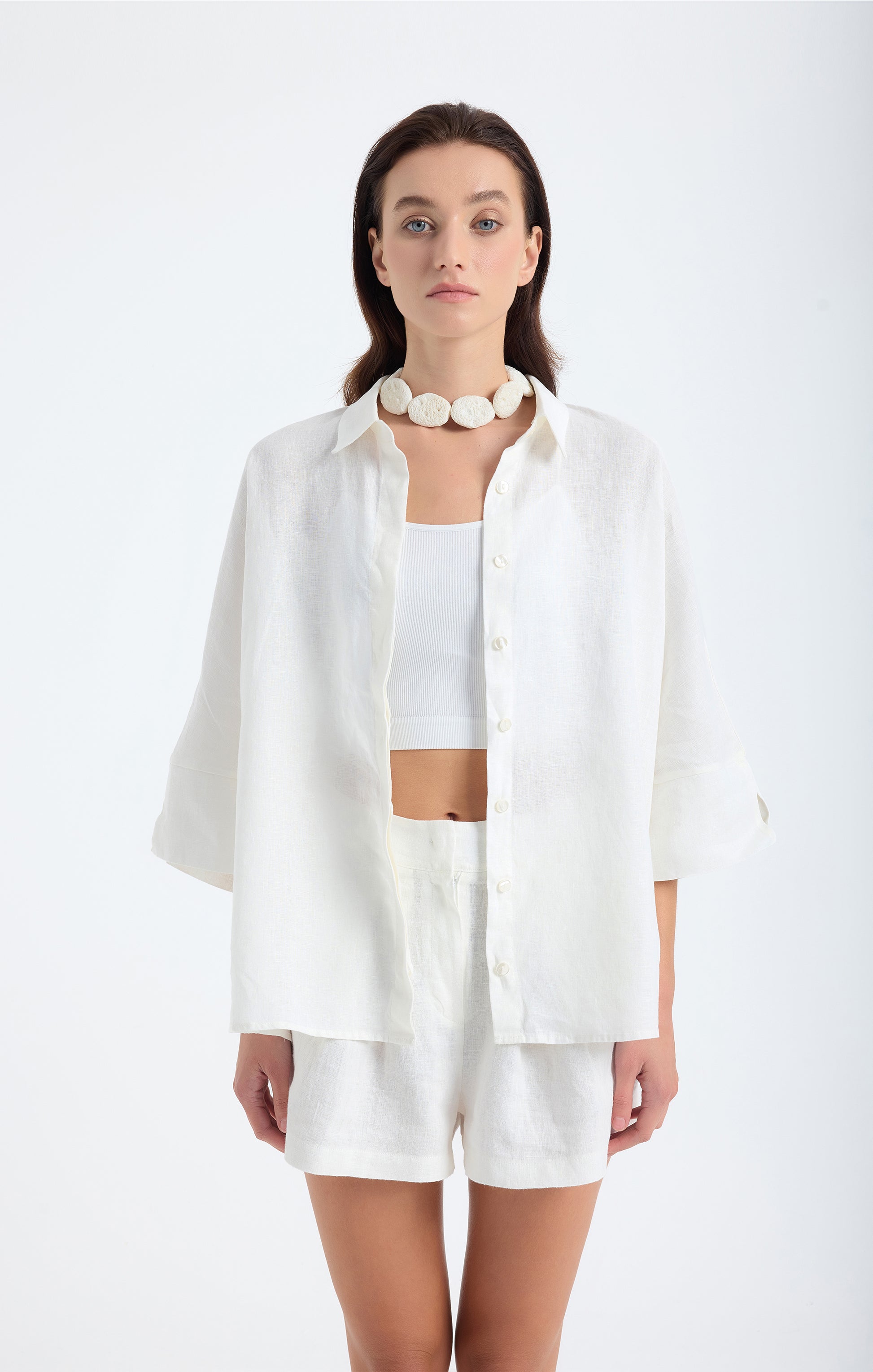 Iyan 100% Linen Oversize Shirt -White