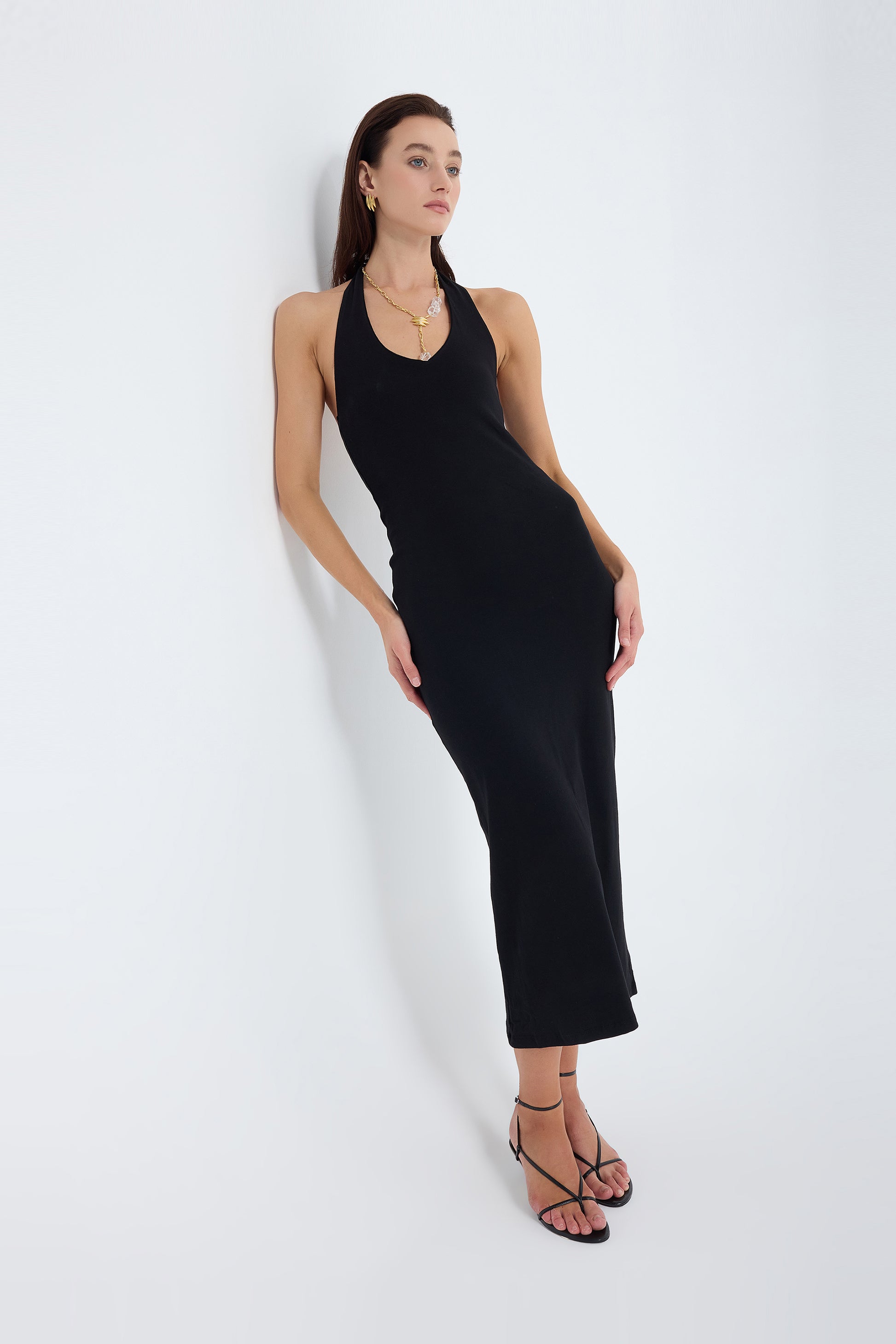 Orion Halter Cotton Midi Dress – Black