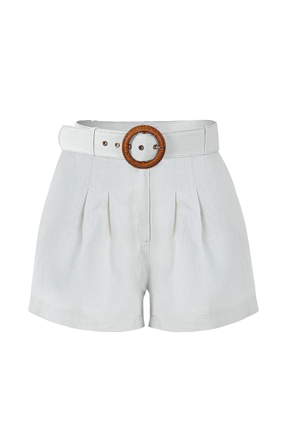 Crafted from 100% pure linen, these tailored pleated shorts combine refined style with effortless comfort. Designed with a high-waist fit and front pleats, they create a structured yet relaxed silhouette. The breathable linen fabric ensures coolness and ease, making them a perfect summer essential for both casual and resort looks.