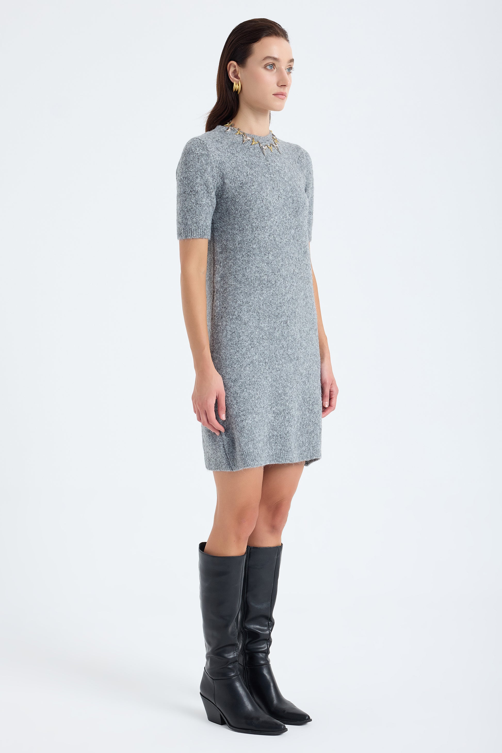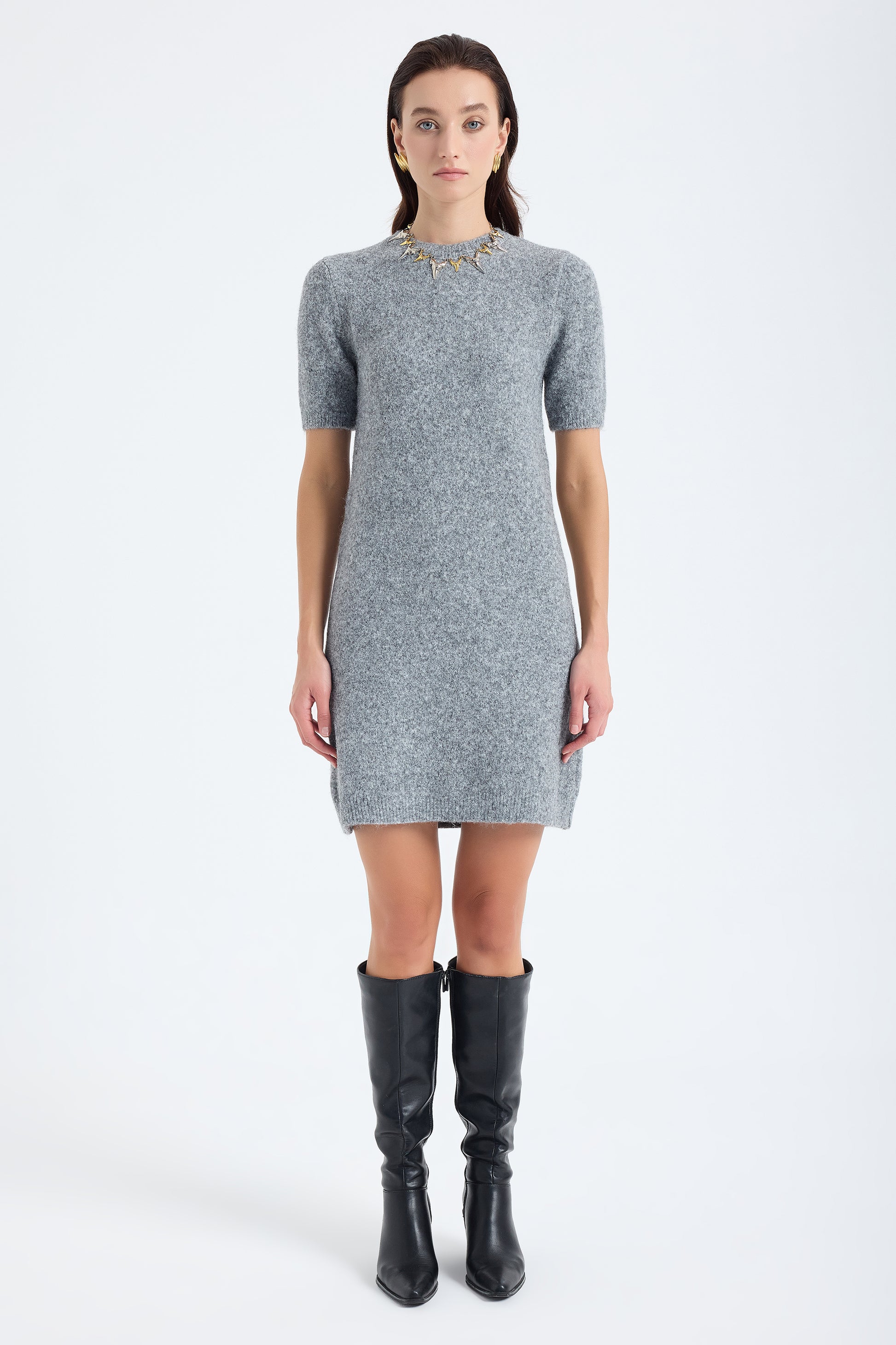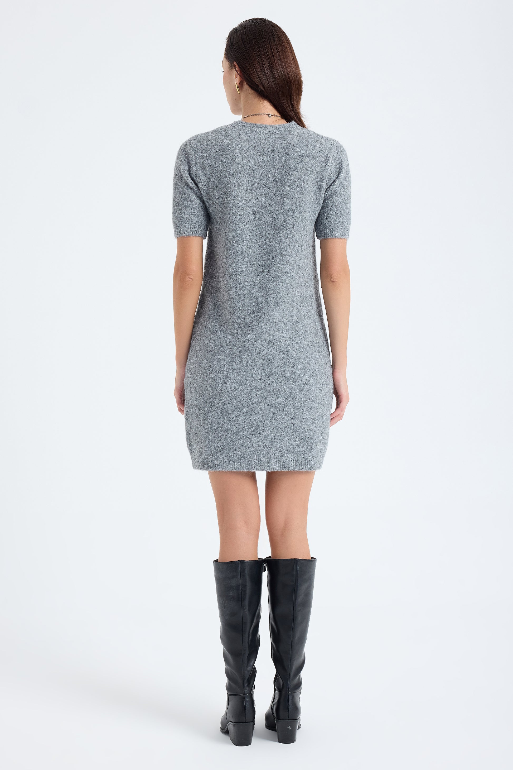 Chic and comfortable, the Rune Short Sleeve Knit Dress in grey captures Monlicia’s signature effortless sophistication. Crafted with a plush, breathable knit texture, it’s perfect for layering through the colder months yet light enough for spring styling. The minimalist cut and timeless hue make it easy to pair with boots, sneakers, or flats for any occasion.